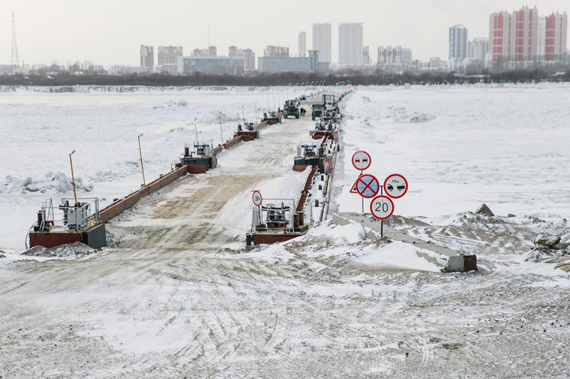 Пассажирская трансграничная понтонная переправа между Россией и Китаем состоит из 10 барж, три из которых принадлежат российской стороне. Между тем зимой на Амуре ставят и второй понтонный мост — грузовой. За него отвечает торговый порт Благовещенска. Грузовая переправа состоит из пяти российских барж и четырех китайских. Китайская сторона уже смонтировала свою часть моста, российская — еще не приступала. Как сообщили АП в министерстве транспорта, установить баржи сотрудники благовещенского торгового порта планируют на следующей неделе.