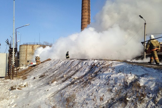 По данным регионального управления МЧС, на территорри котельной «Амурсельмаш» при сливе мазута из цистерны в приемную емкость произошла детонация паров мазута, что привело к возникновению пожара.