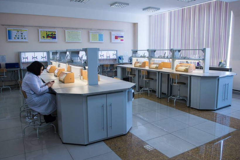 В химлаборатории есть все, что необходимо для производства: высокоточные весы, вытяжные шкафы для токсичных реагентов, термостаты, муфельная печь, колбочки и пробирки и многое другое.