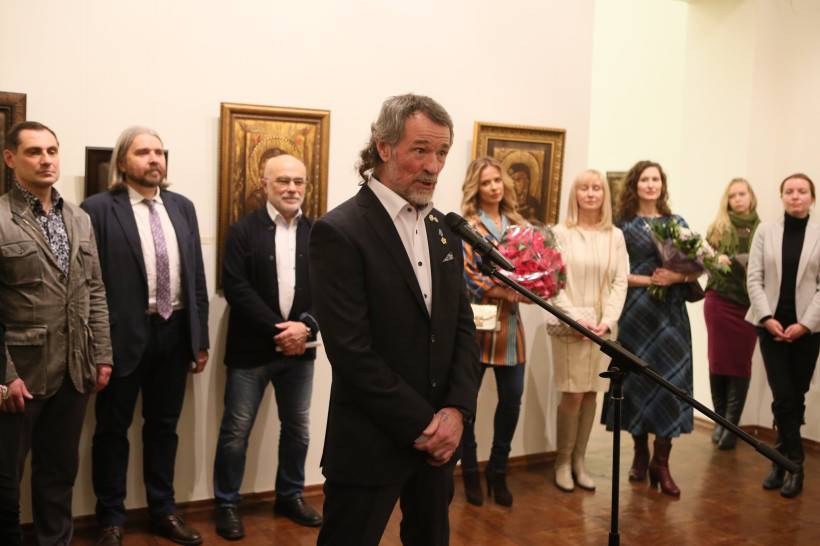 Церемония прошла на открытии выставки Тихомирова «Оконопись». До 4 декабря она будет работать в стенах академии художеств. Эта выставка, как и парижская, посвящена 160-летию Благовещенска, 350-летию иконы Албазинской Божьей Матери и 60-летию художника. Александр представил более 50 оконописных работ, появившихся в последние 15 лет. В том числе есть сделанные с драгоценными металлами и камниями. Оконопись создается на старых оконных ставнях — темперой рисуются религиозные сюжеты.