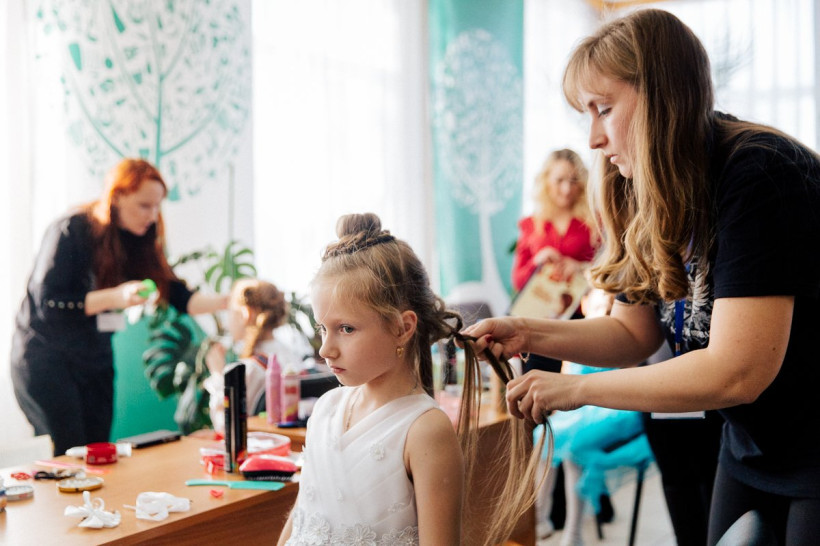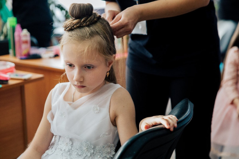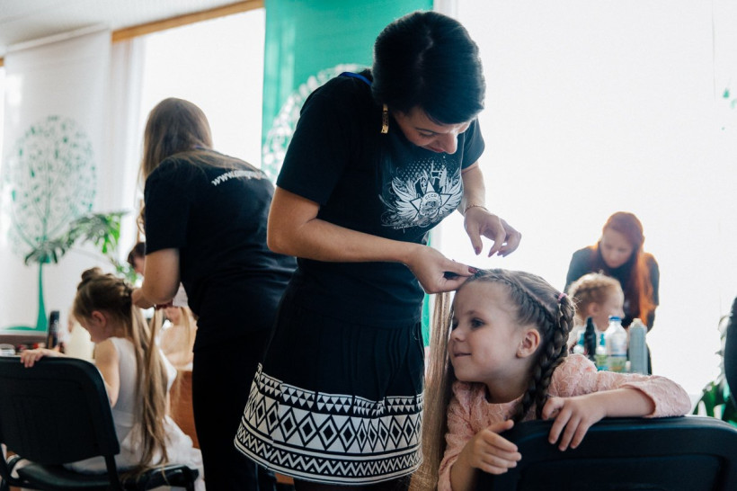 Задача у десяти мам была непростая — всего за 45 минут сделать прическу на голове у своей модели. Строгое профессиональное жюри оценивало все: креативность прически, правильность и аккуратность плетения косы и даже настроение модели — не плачет ли она во время сооружения прически.