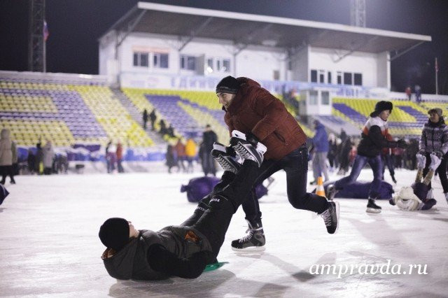 Для всех желающих на ледовом празднике прошла конкурсно-развлекательная программа «Слалом с мячом», «Керлинг», «Тачка», «Боулинг», «Перетягивание каната». Любителей здорового образа жизни угощали горячей кашей, пирожками и чаем. За прошлый зимний сезон только стадион «Амур» посетили более 40 тысяч жителей города, сообщает пресс-служба регионального правительства.