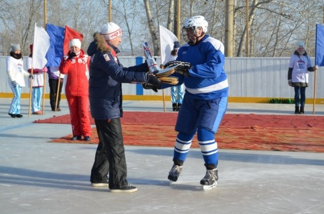 Из рук губернатора Приамурья Александра Козлова и мэра Благовещенска Валентины Калиты спортсмены из взрослой и юношеских команд получили новые хоккейные клюшки. Спортивный объект построен при содействии Благовещенского завода строительных материалов, городских и областных депутатов в ответ на обращения жителей отдаленного района.