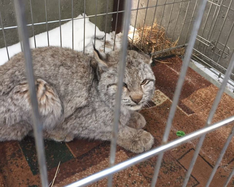 В два часа дня сытую рысь отправили на свободу, выпустив в лес.