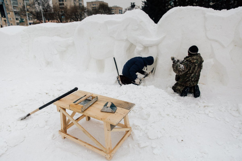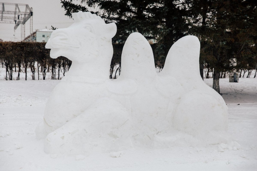Морж, медведь и верблюд: в снежном городке Благовещенска появились первые скульптуры