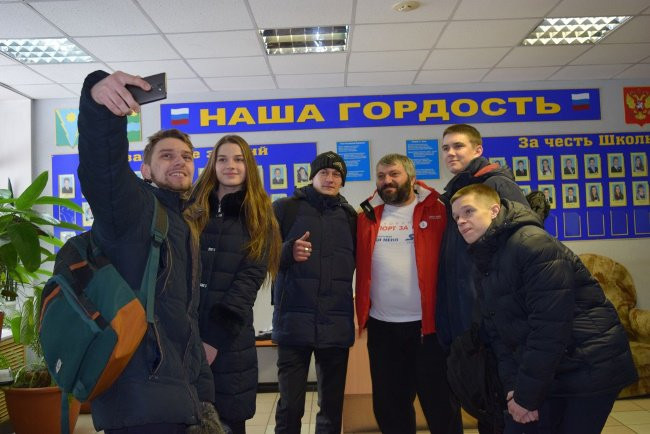 После Нодар Беризде встретился со школьниками местного лицея. Он рассказал ребятам о своей миссии, о том, что нужно вести исключительно здоровый образ жизни, а также поведал разные интересные истории из своей жизни. Нодар с удовольствием ответил на вопросы лицеистов.