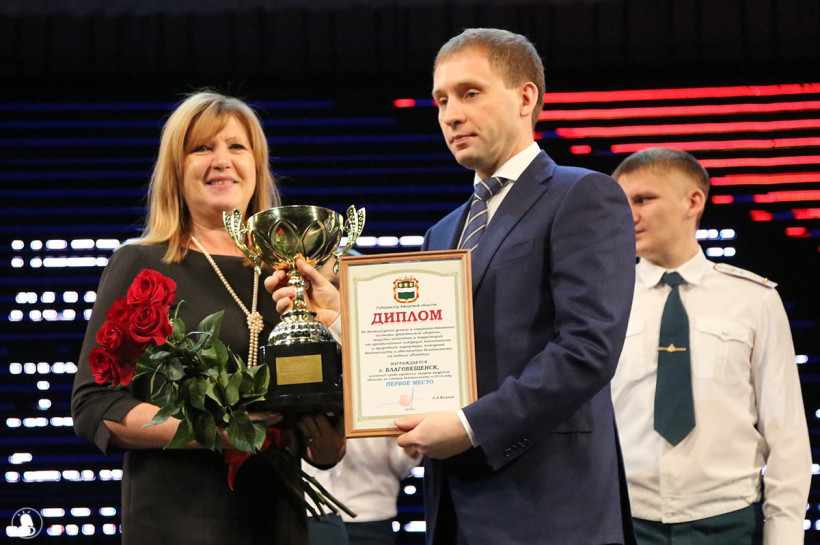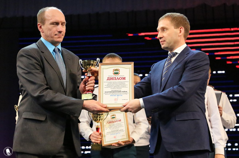 По итогам года прошло награждение лучших подразделений и муниципалитетов. Благовещенский отряд пожарной охраны получил новую маневренную пожарно-спасательную машину на базе японского автомобиля Isuzu.