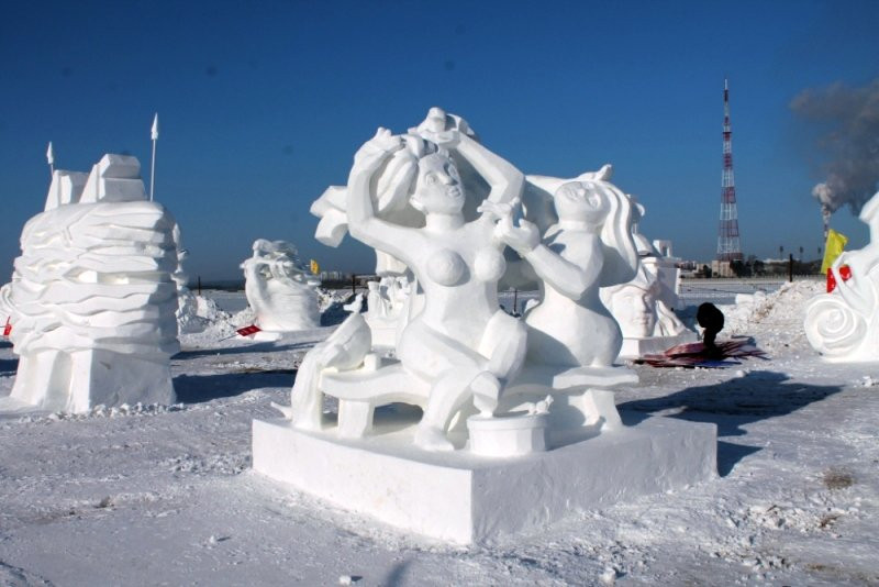 Снежная фигура моющихся в бане женщин победила на конкурсе в Хэйхэ