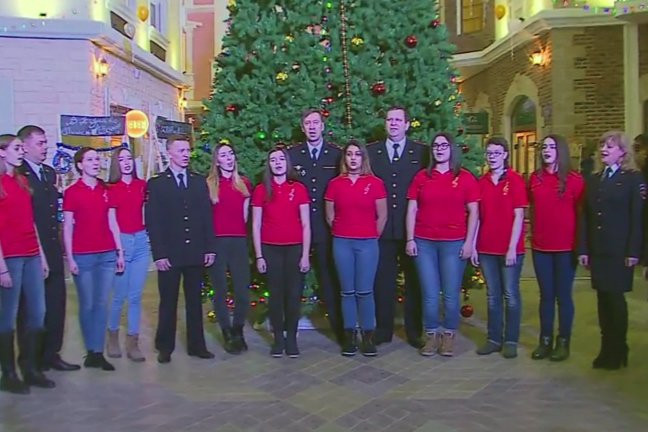Сотрудники амурского управления МВД провели музыкальный флешмоб в одном из торговых центров Благовещенска. Импровизированный концерт возле новогодней ели стал неожиданностью для его посетителей. Правоохранители исполнили а капелла песню «Конь» группы «Любэ» и композицию «Зима» Эдуарда Хиля.