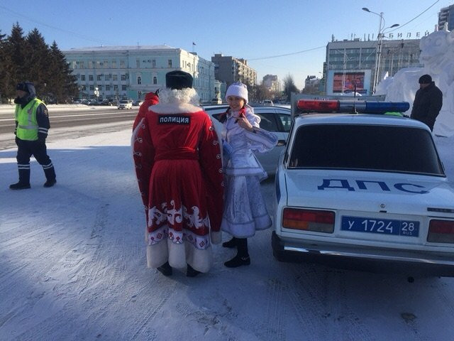 Сотрудники ГИБДД в Приамурье нарядились в Деда Мороза и Снегурочку