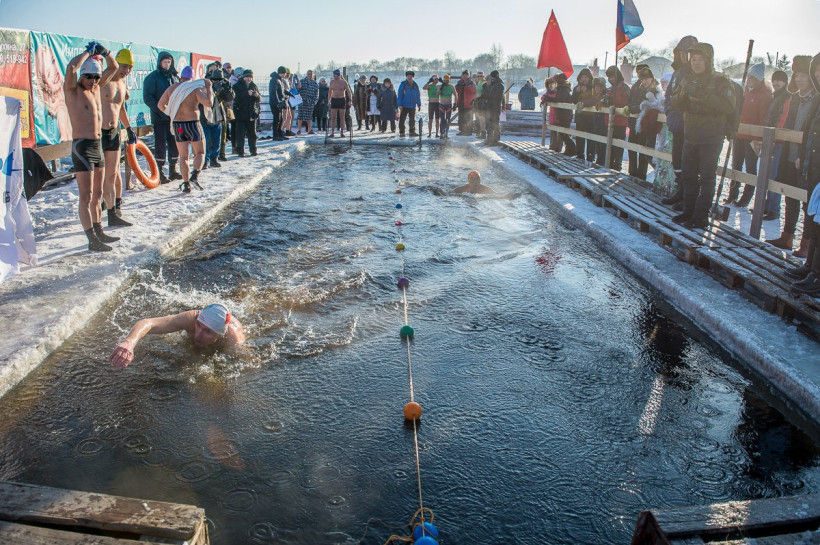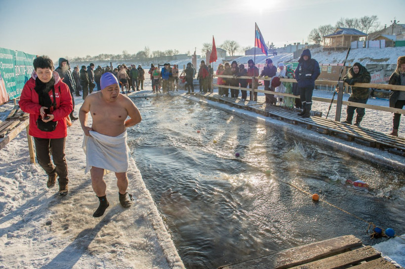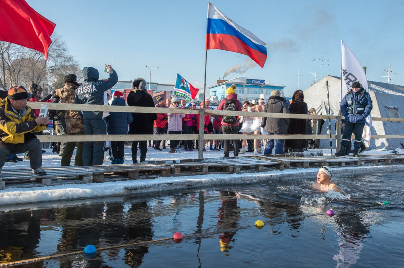 Амурские и китайские моржи устроили заплыв в проруби Благовещенска (36 фото)