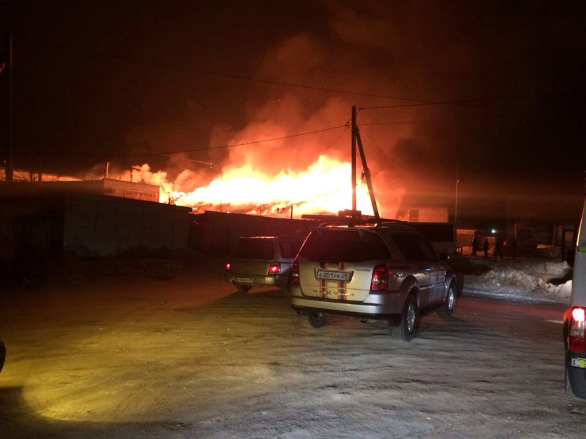 В Благовещенске тушат серьезный пожар в автобоксе около «Амурского металлиста»