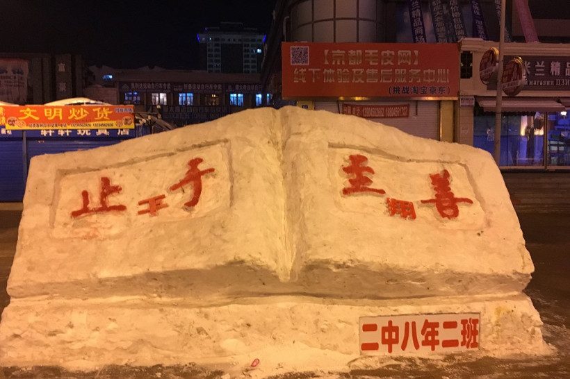 Китайские и российские школьники налепили смешных снеговиков в Хэйхэ