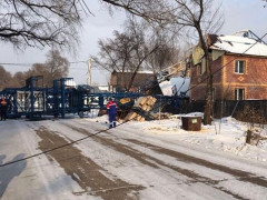 В столице Приамурья 6 января на дом упал строительный кран. О происшествии сообщили очевидцы.