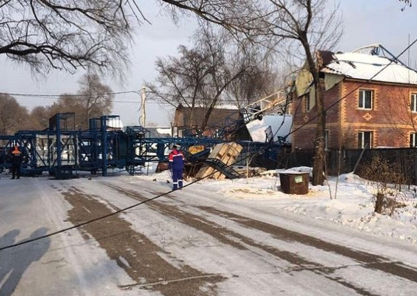 В столице Приамурья 6 января на дом упал строительный кран. О происшествии сообщили очевидцы.