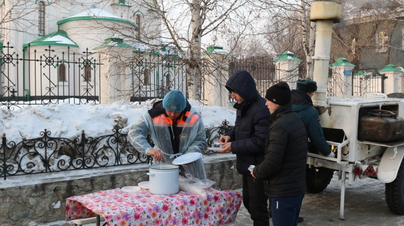 Рождественские полевые кухни вблизи соборов и церквей развернули в Благовещенске в сочельник и Рождество сотрудники МЧС Амурской области.
