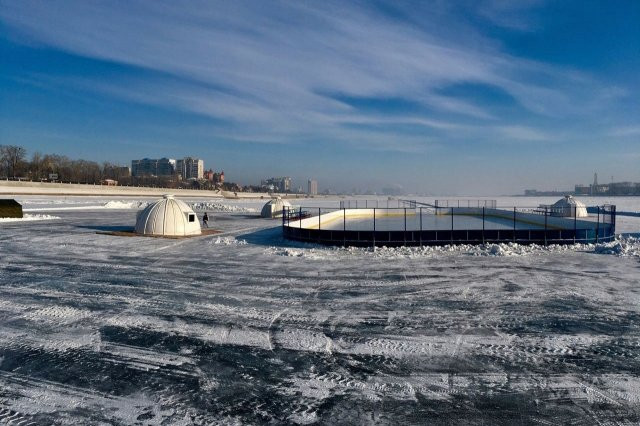 Хоккейную коробку для международного матча установили на реке Амур (фото)