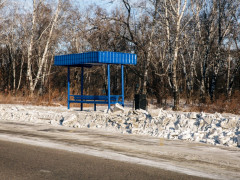 Сугробы возле остановки мешают благовещенским инвалидам пользоваться автобусами