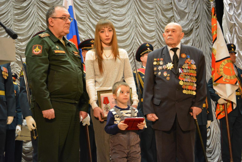 Указом президента РФ «За мужество, отвагу и самоотверженность, проявленные при исполнении воинского и служебного долга» Никита Шевченко награжден орденом Мужества посмертно. На церемонию супруга погибшего Екатерина Шевченко пришла с четырехлетним сыном. Государственную награду женщине передал временно исполняющий обязанности командующего 35-й Армией полковник Павел Шейнеман, сообщает пресс-служба мэрии Белогорска.