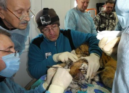Полосатым пациентом занимались специалисты Московского зоопарка, челюстно-лицевой хирург и офтальмолог, который более 50 лет делал операции на глазах людям. «В результате обследования тигренка мы, совместно с коллегами, пришли к очень важному выводу, что животное, возможно, может быть возвращено в дикую природу. У него появился, хотя и небольшой, но шанс. Он основан на том, что обследование глаз врачом-офтальмологом показало, что со зрением у животного все нормально», — сообщил руководитель отдела Амурского филиала WWF России по сохранению редких видов Павел Фоменко.