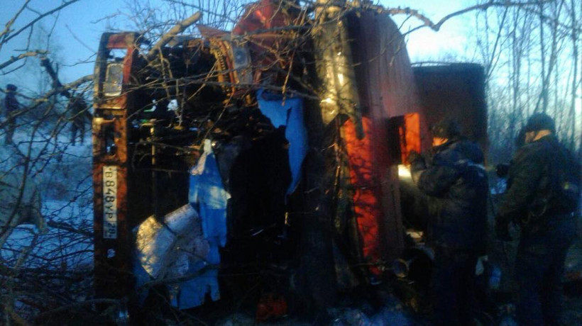 В Благовещенске с трассы слетел грузовик: водителя четыре часа вырезали из кабины (видео)