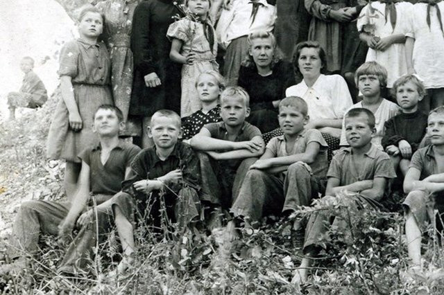 Из детей я запомнил только Витю Шулейкина. Этот мальчик совершенно не мог ходить. Неподалеку от детдома было гороховое поле, и нас часто водили туда горох поесть. Идем отрядом через мост, веселую детскую песню поем, а он сзади скачет за нами на руках, как лягушонок. Он никому не был нужен… Почему‑то я всегда рядом с ним крутился, и на этот мост его затаскивал, и в песочницу… И он ко мне тянулся. До боли в душе до сих пор хорошо помню его печально-испуганные большие глаза…