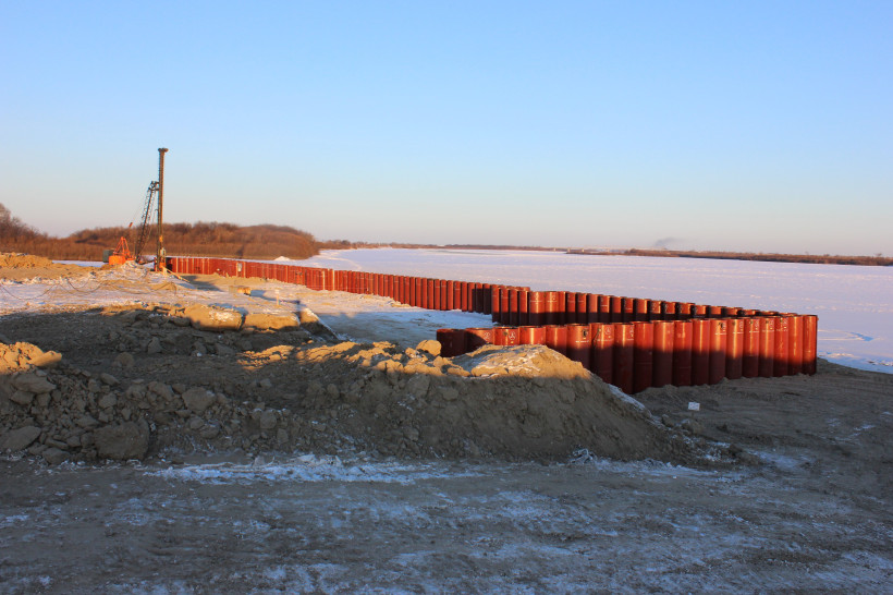 Завершился первый этап возведения временного причала на реке Зее, который нужен для обеспечения стройматериалами Амурского газоперерабатывающего завода. Сформирована причальная стенка длиной 126 метров. Она состоит из свай общим весом около 590 тонн. Их полость для повышения несущей способности будет заполнена бетоном.