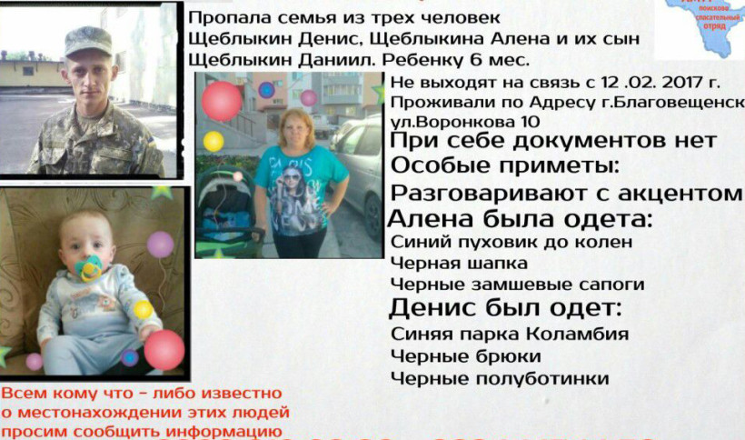 — Денис и Алена приехали из Украины более полугода назад, российских паспортов у них пока нет. Мы помогали им перебраться в Благовещенск. Даниил родился уже здесь, — рассказала АП волонтер Елена Злобина. — Они снимали квартиру на Воронкова, 10. Но 12 февраля перестали выходить на связь.