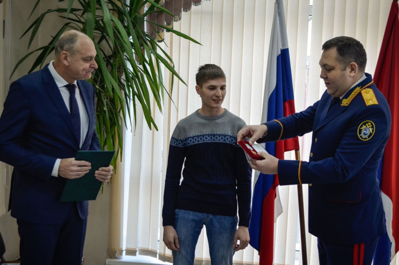 Жителя Чигирей Антона Нечая сегодня наградили медалью Следственного комитета РФ «За содействие». 28-летний амурчанин получил награду накануне Дня защитника Отечества из рук руководителя следственного управления по Амурской области Андрея Голомбиевского. Антон Нечай спас 14-летнюю девочку от изнасилования и помог расследовать дело против преступника, который напал на нее с ножом.