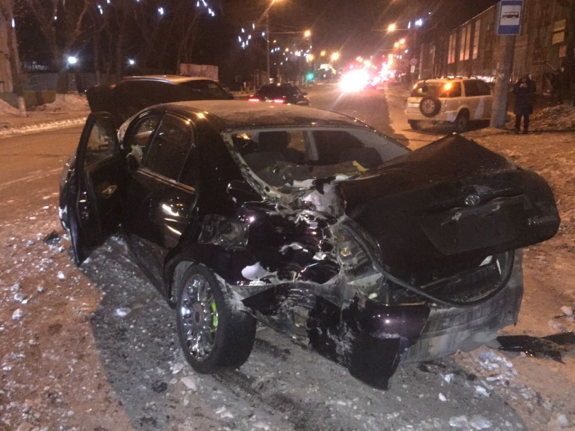 Как утверждают очевидцы, Toyota Verossa двигалась по Калинина в сторону Тенистой на большой скорости. Рулевой авто начал обгонять впереди идущую машину и выехал на полосу встречного движения. Иномарку начало заносить, и она врезалась сначала в одно дерево, потом в другое.