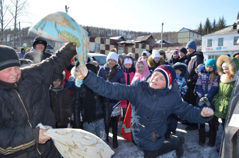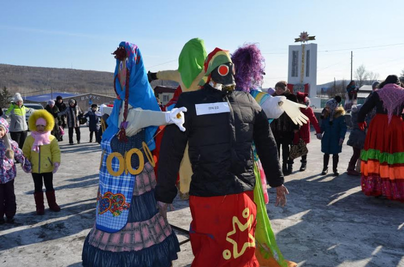 Масленица в противогазе и бои подушками: в Соловьевске проводили зиму