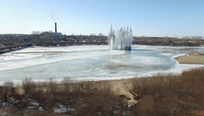 Взывчатое вещество заложили в 31 лунку из расчета по 1,6 килограмма в каждую «мини-прорубь», на глубину 60-80 сантиметров. Подрывные работы контролировали военнослужащие, пожарные, спасатели и полицейские, на месте дежурили медики.