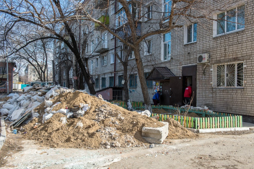 В Благовещенске жители многоэтажки и сотрудники супермаркета ссорятся из-за строительного хлама
