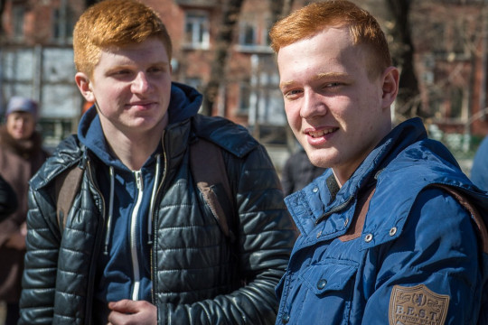 Они собрались 26 марта в Благовещенске в сквере АОДНТ на флешмоб (ФОТО) — и те, кто в юности пытался спрятать конопушки под слоем грима, и те, кто специально пошел к парикмахеру за огненной шевелюрой. Почти сотня участников — дети, парни и девчонки, в одиночку, с родными и даже с рыжими собаками. Многие из них были незнакомы друг с другом, но вместе чувствовали себя одной солнечной семьей. Отыскать в Приамурье людей, унаследовавших так называемый «ген имбиря», решило праздничное агентство «Пятница». Откликнулись 200 человек со всей области.