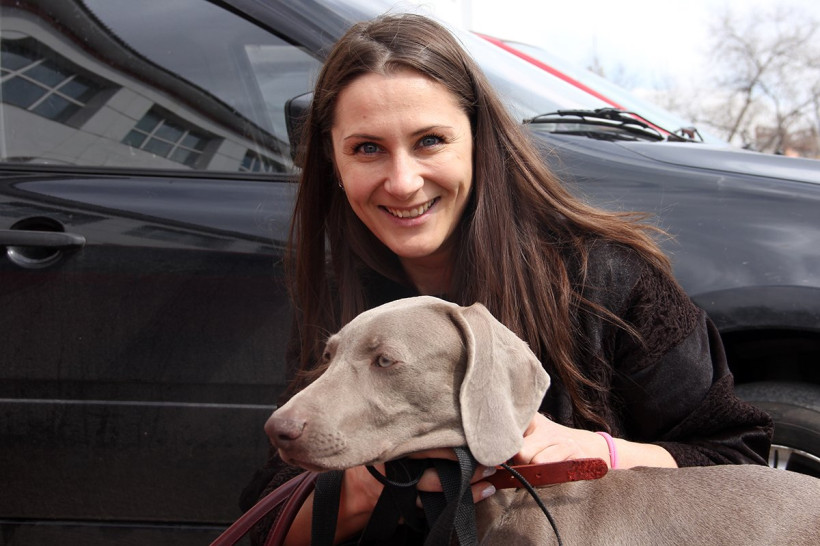 По словам хозяйки, веймаранер считается самой умной породой, все понимает, легко дрессируется. Минус — ей нужно много гулять. «У них очень необычные глаза. Щенки рождаются с ярко голубыми глазами, к году они становятся янтарные», — рассказала хозяйка.