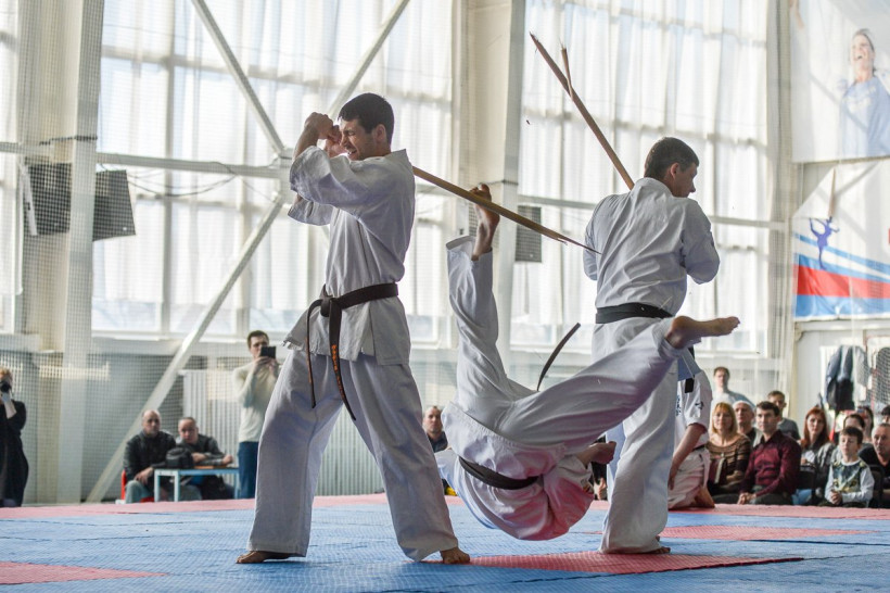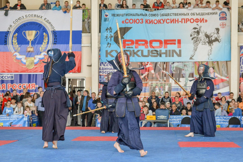 В Благовещенске 9 апреля прошел Первый фестиваль боевых единоборств. Изюминкой мероприятия стало музыкальное выступление — спортсмены вживую спели гимн России. Всего в фестивале приняли участие 150 спортсменов из Приамурья, Хабаровского края и Еврейской автономии. На татами провели показательные выступления по айкидо, кендо, киокушинкай карате и киокушин профи. В заключении зрителям показали рейтинговые поединки среди профессионалов. «Победу в киокушинкай одержал спортсмен из Хабаровска, золото в кудо и К-1 досталось благовещенцам», — рассказал журналисту АП директор благовещенской городской общественной организации «Киокушинкай каратэ» Константин Хохулин. За спортивным зрелищем наблюдал фотокорреспондент АП Андрей Ильинский.