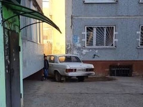 В областном центре между двух домов на Студенческой, 41 застряла отечественная легковушка. Водитель попытался проехать сквозь узкий проход, но маневр не удался.