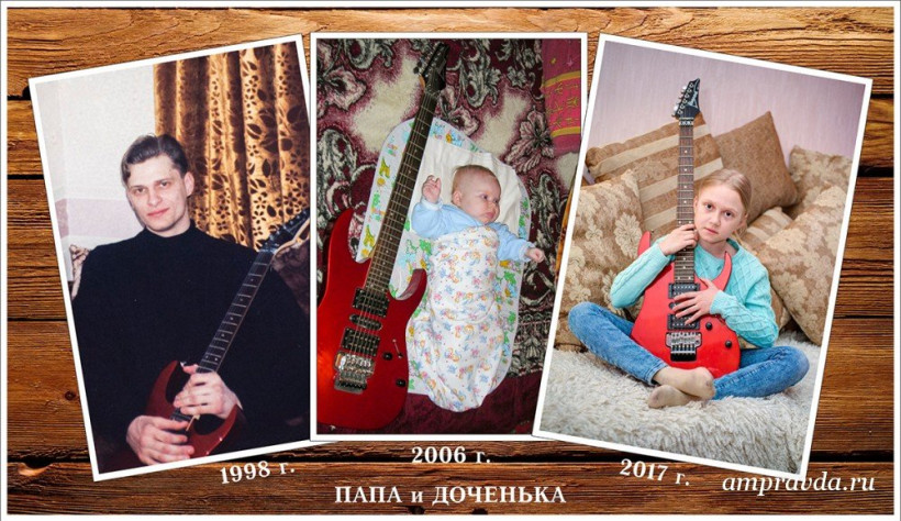 Первое место завоевал Максим Готвянский, который в трех фотографиях рассказал 20-летнюю музыкальную историю своей семьи. «Я сам в 90-е годы играл на этой гитаре, в 2006 году родилась дочь Анна, которая была меньше гитары. В этом году Анне исполнилась 10 лет, и я решил сфотографировать ее вместе с раритетным музыкальным инструментом и все три снимка прислал на конкурс», — озвучил задумку победитель конкурса.