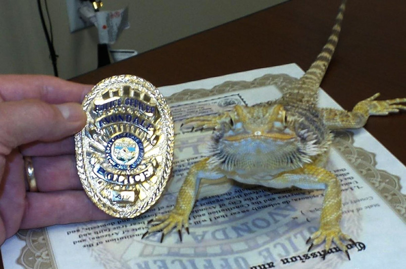 Полицейские из департамента города Эйвондейл, штат Аризона, приняли на службу ящерицу. Бородатая рептилия по кличке Айро приняла присягу и получила отличительный знак полицейского.