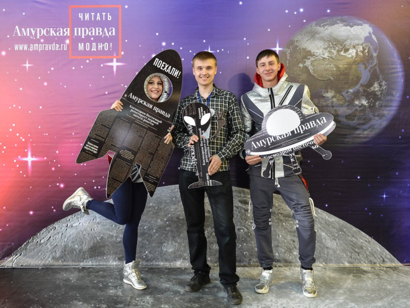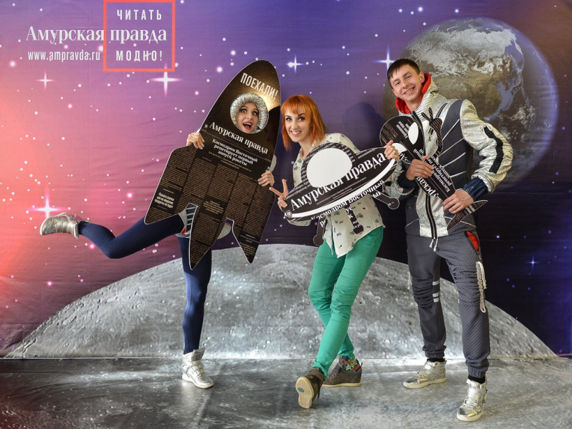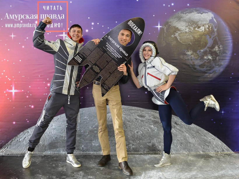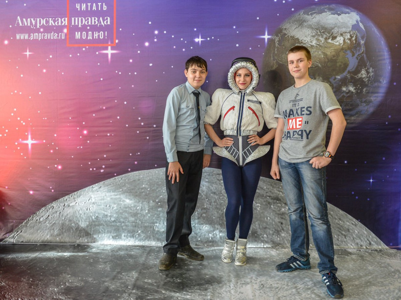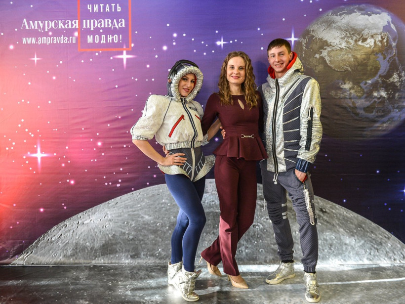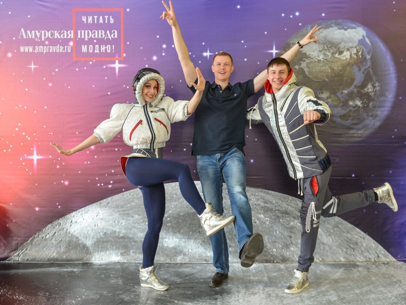 Три российских космонавта позировали на фоне Вселенной фотосалона «Амурской правды»