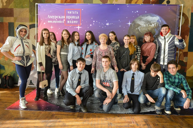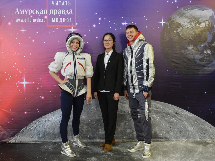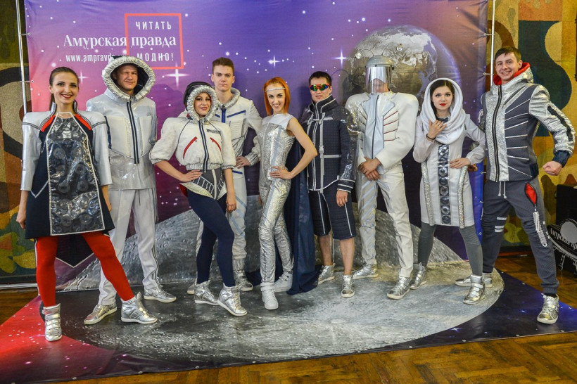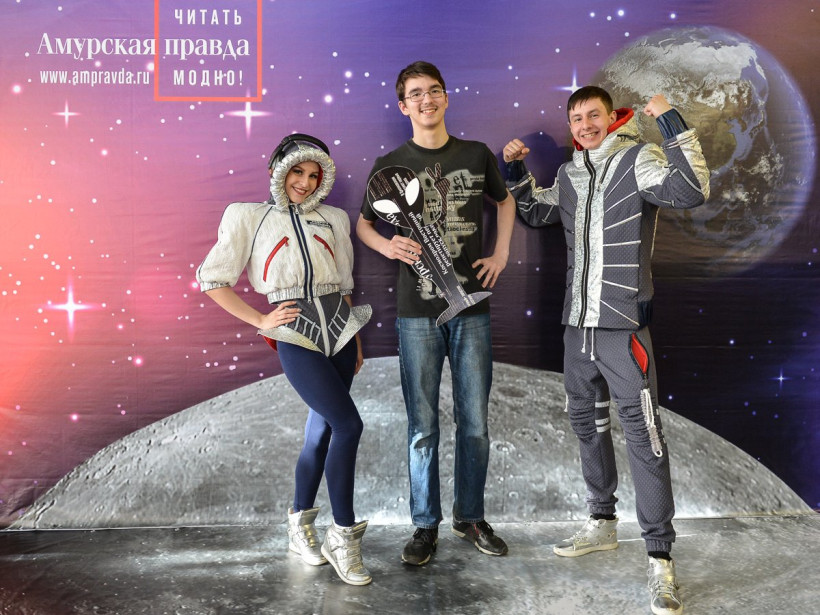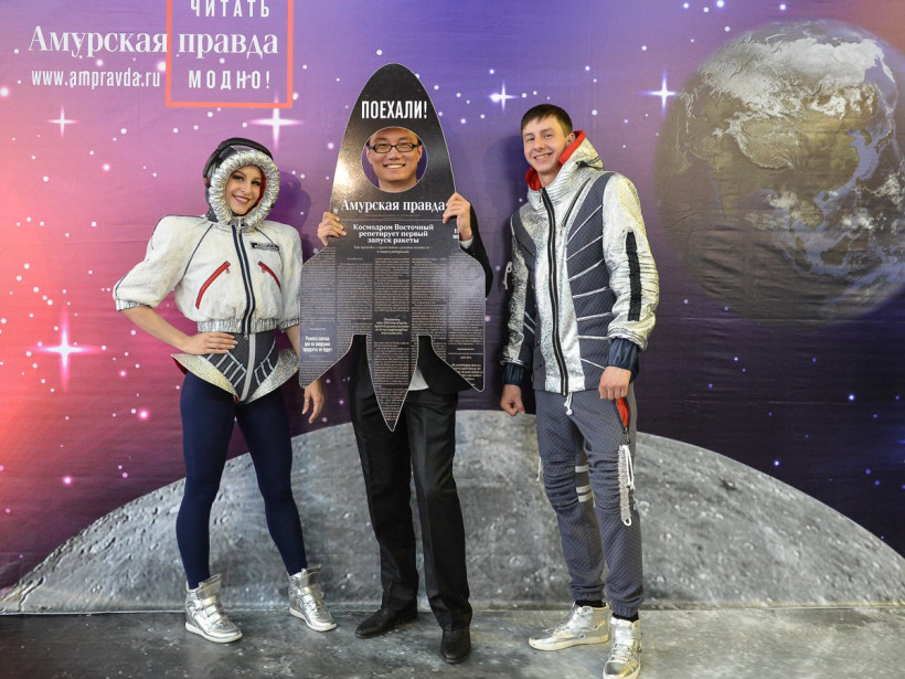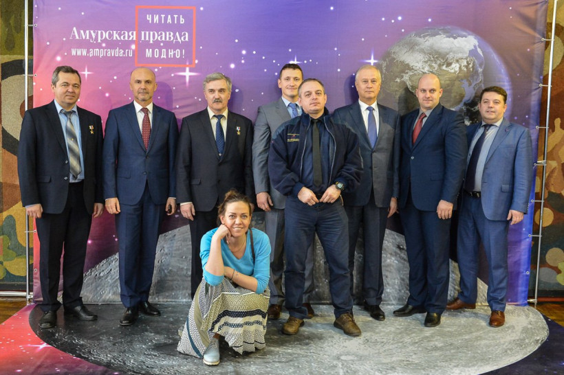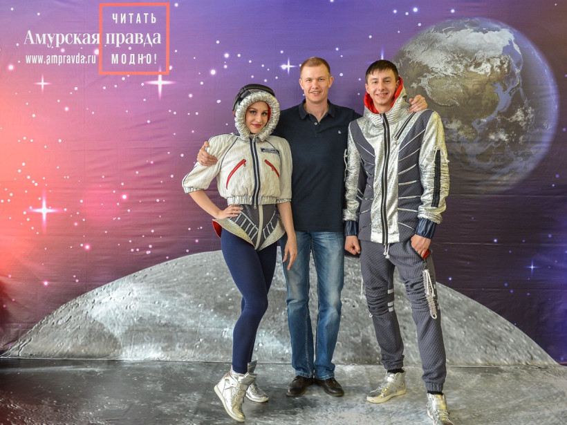 Три российских космонавта позировали на фоне Вселенной фотосалона «Амурской правды»