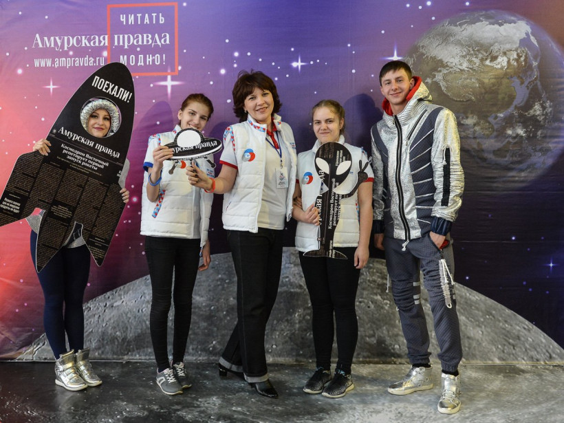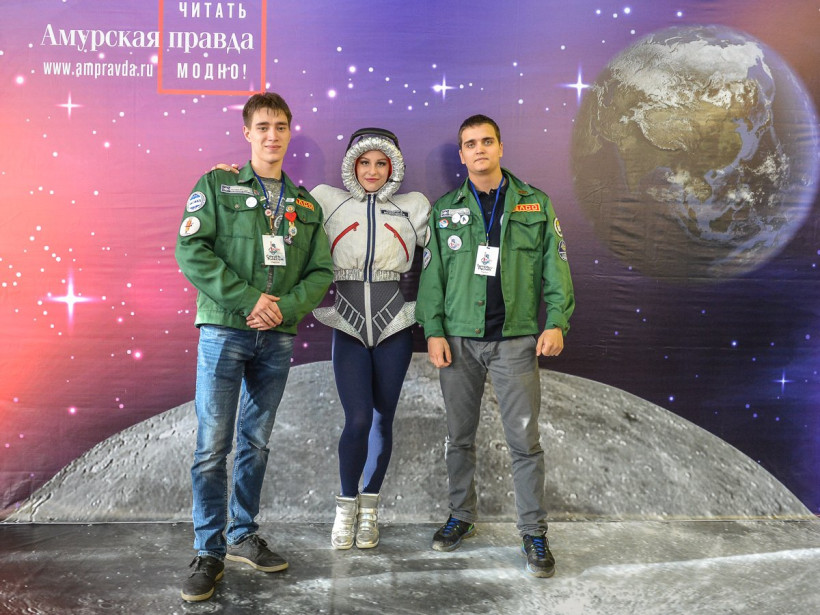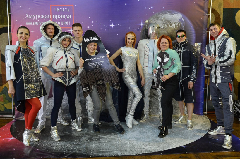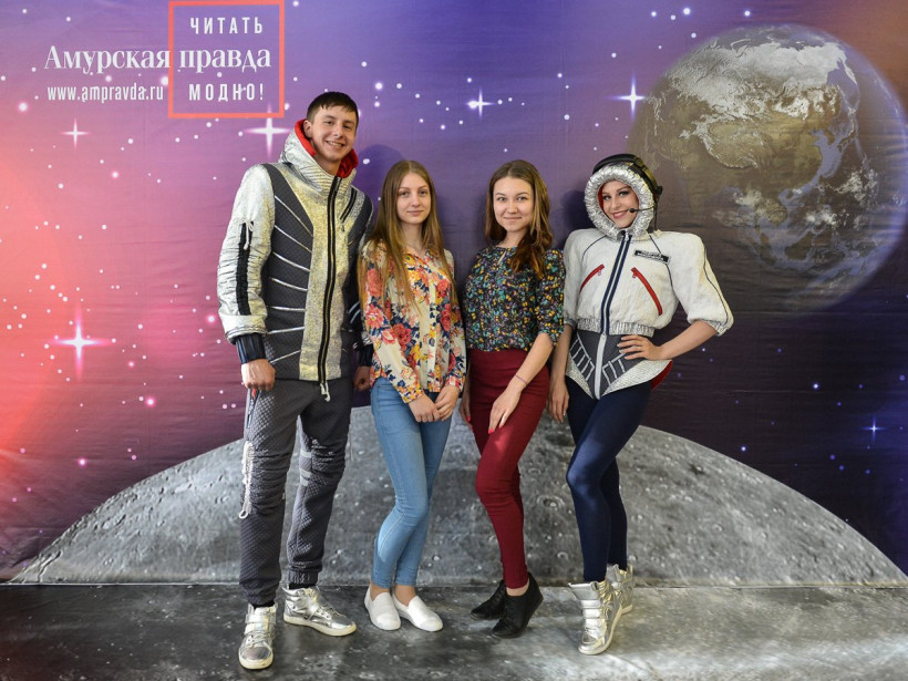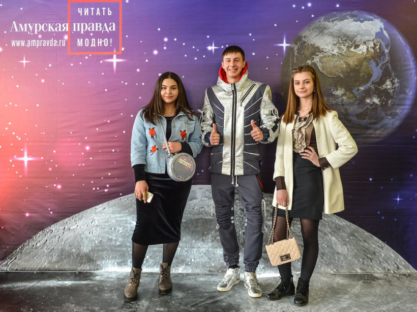 Вместе с другими гостями Приамурья они побывали на космофесте «Восточный»«Амурская правда» и областная филармония в очередной раз запустили в космос свой фотосалон. Уже по традиции он работал в дни молодежного фестиваля «Космофест "Восточный"», который проводится в Приамурье третий год подряд. Как и в прошлый раз, среди его гостей можно было наблюдать российских космонавтов. На этот раз — Александра Калери, Олега Скрипочку и Сергея Кудь-Сверчкова. Вместе с ними запечатлеть себя на фоне Вселенной захотели директор департамента общественных связей Объединенной ракетно-космической корпорации Дмитрий Шишкин, ректор АмГУ Андрей Плутенко, исполнительный директор Российского движения школьников и ФГБУ «Росдетцентр» Алиса Крюкова, а также гости из Якутии. Не остались в стороне и представители студотрядов, волонтерского движения и школьных объединений. Вооружившись космическими атрибутами — летающей тарелкой, ракетой и взяв в друзья инопланетянина, они с удовольствием позировали нашему фотокорреспонденту Андрею Ильинскому.