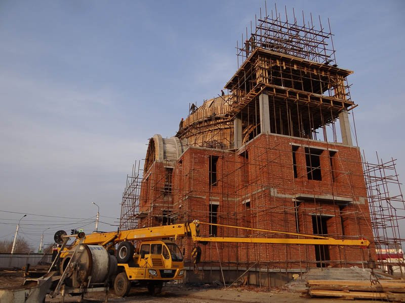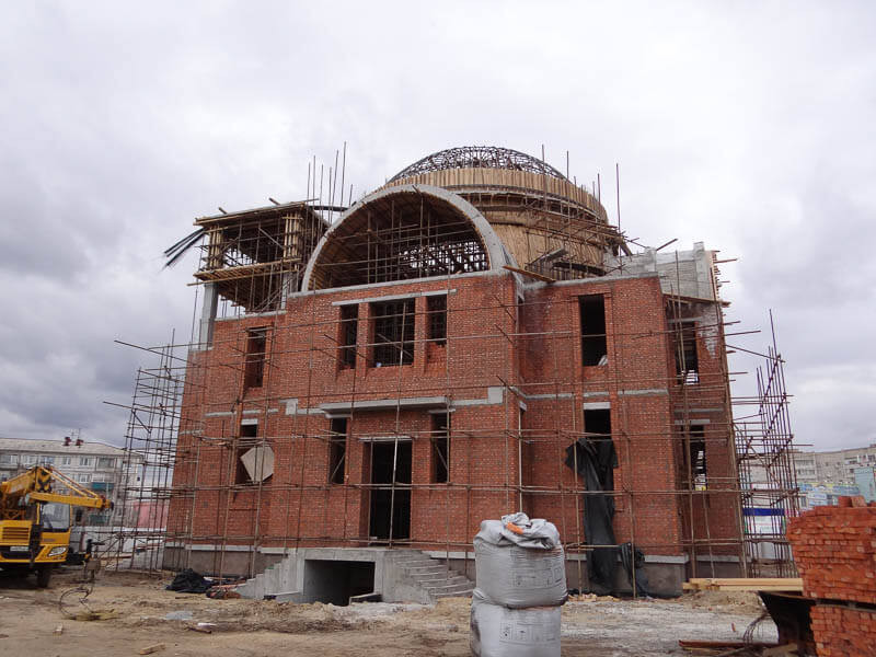 За последние две недели храм Святой Ксении Петербургской в микрорайоне Благовещенска поднялся до 13 метров. Осенью строителям удалось возвести 9 метров объекта. Рабочие уже собрали металлическую конструкцию купольного свода, которую закрыли фанерой и начали обтягивать арматурой.