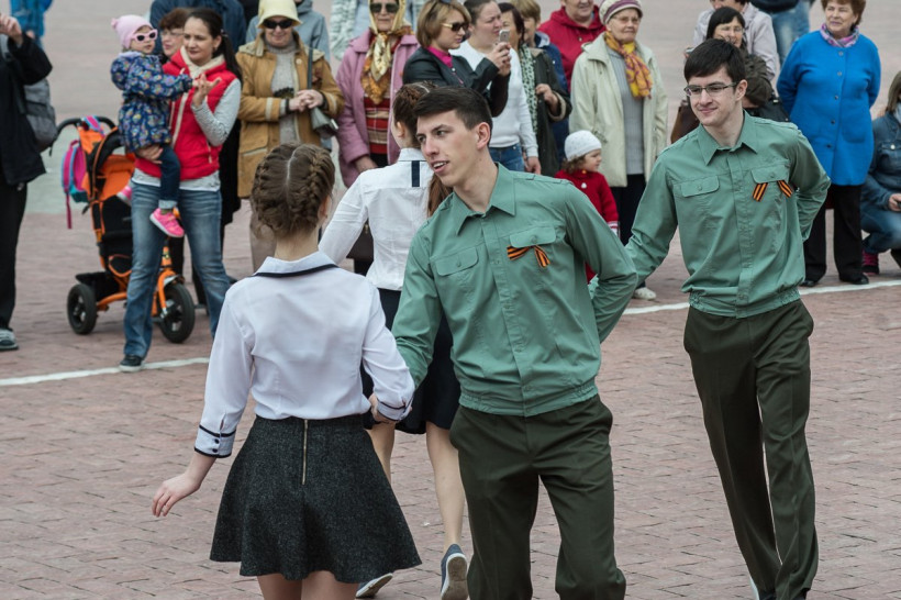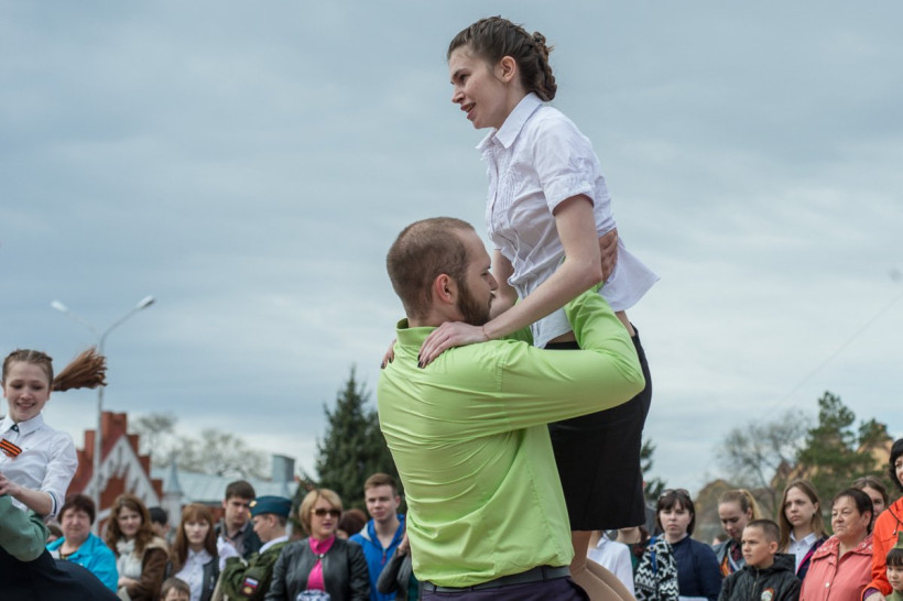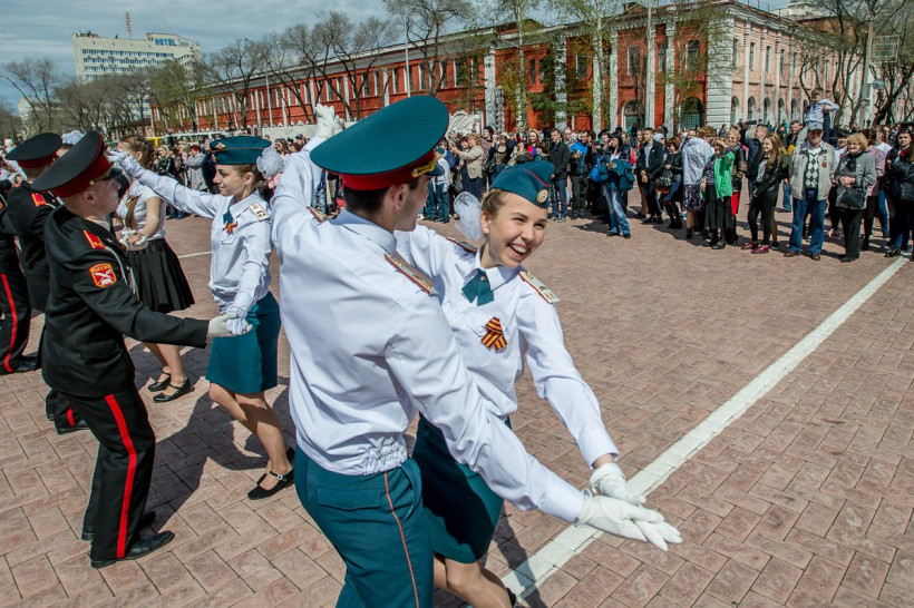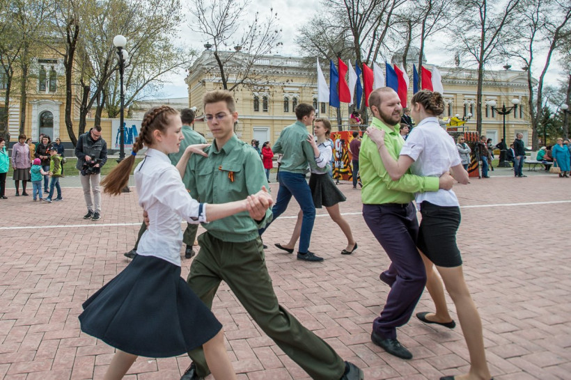 После вальса Благовещенцы спели песню «День Победы»Около 400 человек станцевали вальс на площади Победы в Благовещенске. Такой подарок в преддверии 9 Мая сделали учащиеся лицея № 6. «Вальс Победы» — это международный проект, посвященный Победе в Великой Отечественной войне, позволяющий под композицию военных лет погрузиться в праздничную атмосферу, которая присутствовала 9 мая 1945 года.