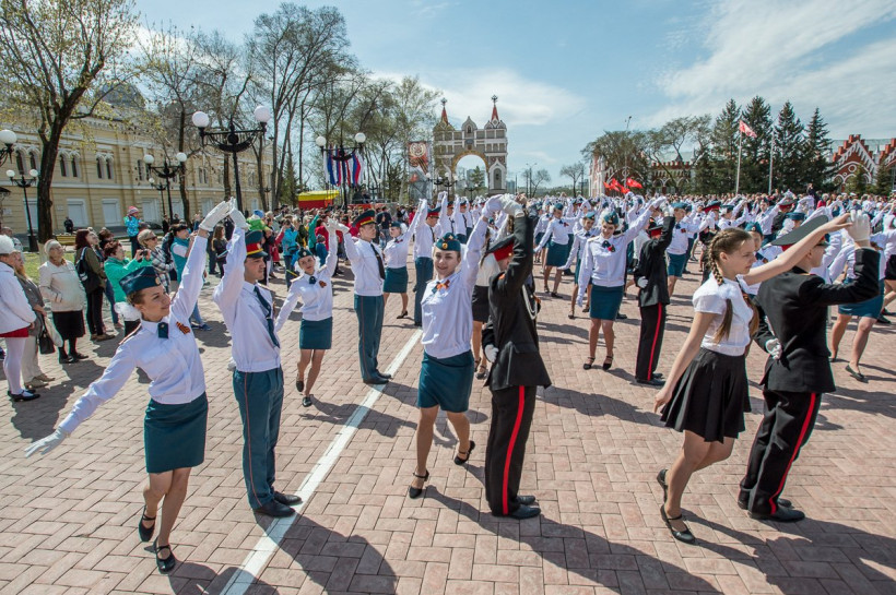 Первые торжественные мероприятия, посвященные Дню Победы, прошли 8 мая в амурской столице. Одним из самых трогательных стал «Вальс Победы». Школьники, лицеисты, кадеты готовились к мероприятию почти полтора месяца. Руководили репетициями директор лицея № 6 Елена Евглевская и военный педагог-организатор Олег Катунин.