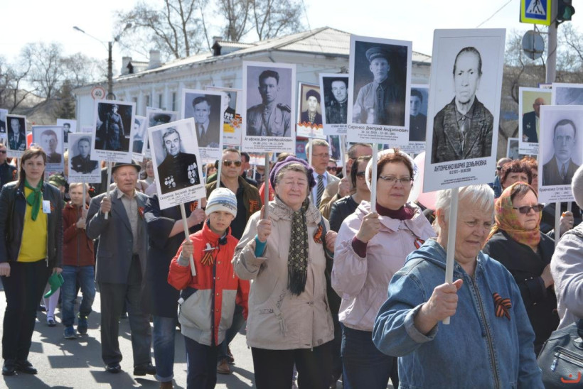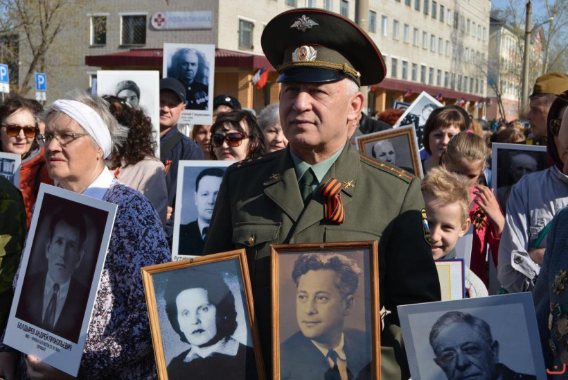 Открывал праздничный день Бессмертный полк. В него собрались около полутора тысяч жителей. Каждому участнику вручался памятный символ — брошь в виде Красной звезды с белым журавлем на Георгиевской ленте, которую изготовили школы города. В шествии принял участие и глава Белогорска Станислав Мелюков. Вместе с сыном он нес портрет своего дяди, младшего лейтенанта Григория Асриянца, погибшего в 1942 году в 18 лет под Ржевом. Бессмертный полк проходит в Белогорске с 2014 года. За два года число участников выросло в пять раз.