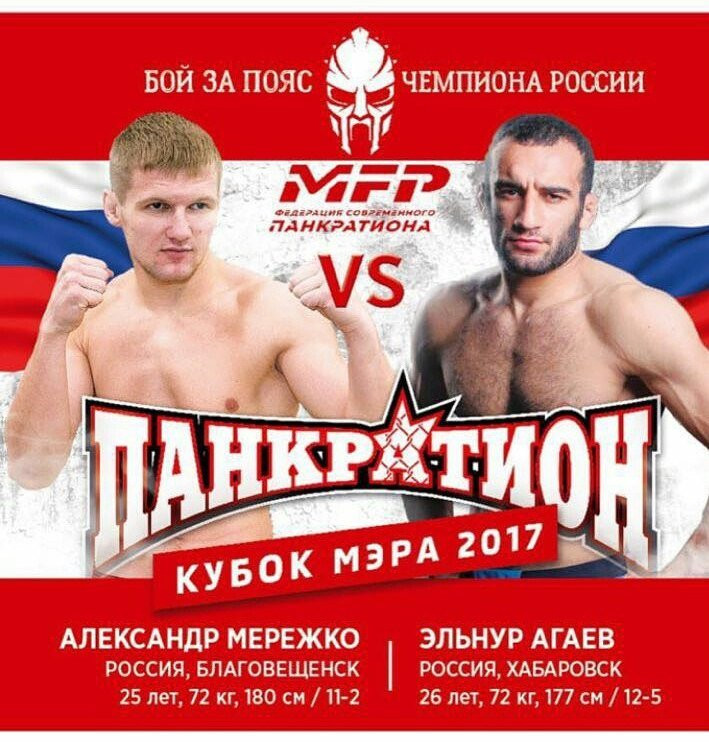 Спортсмен амурской Федерации смешанных боевых единоборств Александр Мережко будет драться за титул чемпиона России по панкратиону. Турнир пройдет в Хабаровске на «Платинум арене» 13 мая. Соперником амурчанина станет опытный боец Эльнур Агаев.