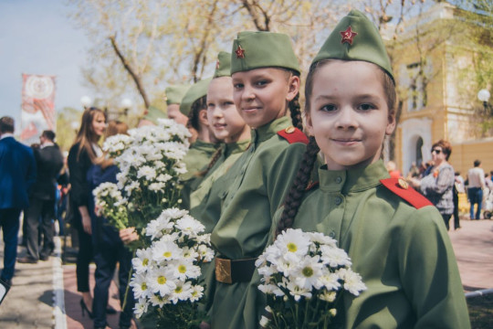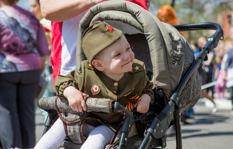 Крохотная медсестра, карапуз-танкист и десантник, в котором роста меньше метра — в этом году на параде Победы в Благовещенске было особенно много ребятишек в военной форме. Для некоторых форменные брючки или юбочки родители заказывали за несколько месяцев до праздника, а на гимнастерку вешали дедовские медали времен Великой Отечественной войны.