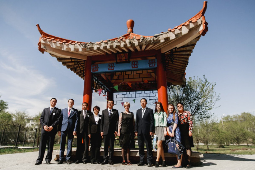 Отреставрированный павильон накрыли красной шелковой тканью, и открыли его сегодня, 15 мая, ректор БГПУ Вера Щекина и представитель партийного комитета Хэйхэского университета Цао Байин.