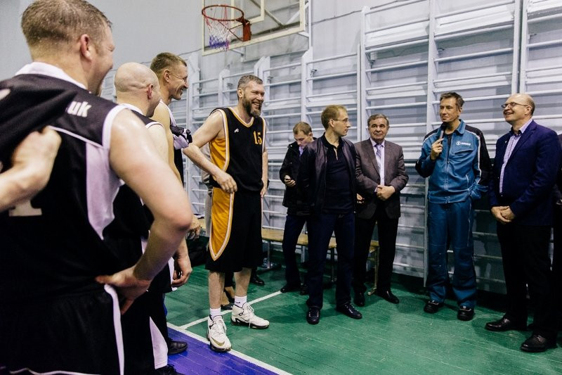 В пятницу, 12 мая, губернатор Александр Козлов и председатель правления ПАО «СИБУР Холдинг» Дмитрий Конов побывали в спортзале. В это время там как раз проходил чемпионат области по баскетболу среди мужских команд.
